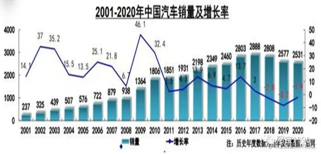 2020年遇上疫情,否则直接总销量应该是超过2019年,2020年我国汽车生产与销售分别完成2522.5万辆和2531.1万辆,同比分别下降2%和1.9%,降幅比上年分别收窄5.5和6.3个百分点,这个已经表现出了非常大的韧性和内动力了。