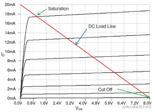 为了使共发射极或源极放大器提供最大的输出电压摆幅,晶体管基极或栅极端的电压以这样一种方式偏移,即晶体管在其截止点和饱和点之间正常工作。请注意图 9.2.1 中的 NMOS (a) 和 NPN (b) 特性曲线。这允许放大器级更准确地再现叠加在直流偏置电压上的输入信号的正负两半。如果没有这种偏置电压,只有输入波形的正半部分会被放大。