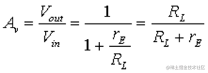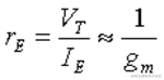 输出阻抗很简单,即发射极(源极)电阻 R L和晶体管 r E的小信号发射极(源极)电阻的并联组合。再次从第 9.3.3 节,r E的等式如下: