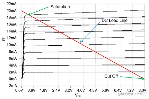 I C = (β/(β+1))*I E = (100/101)*2mA = 1.98 mA并且 I B = I C /β = 1.98mA/100 = 19.8μA。