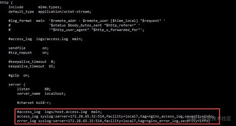 access_log syslog:server=172.28.65.32:514,facility=local7,tag=nginx_access_log,severity=info;