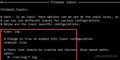 在filebeat的安装目录找到filebeat.yml 配置获取日志文件的路径及输出到ES的配置。具体: