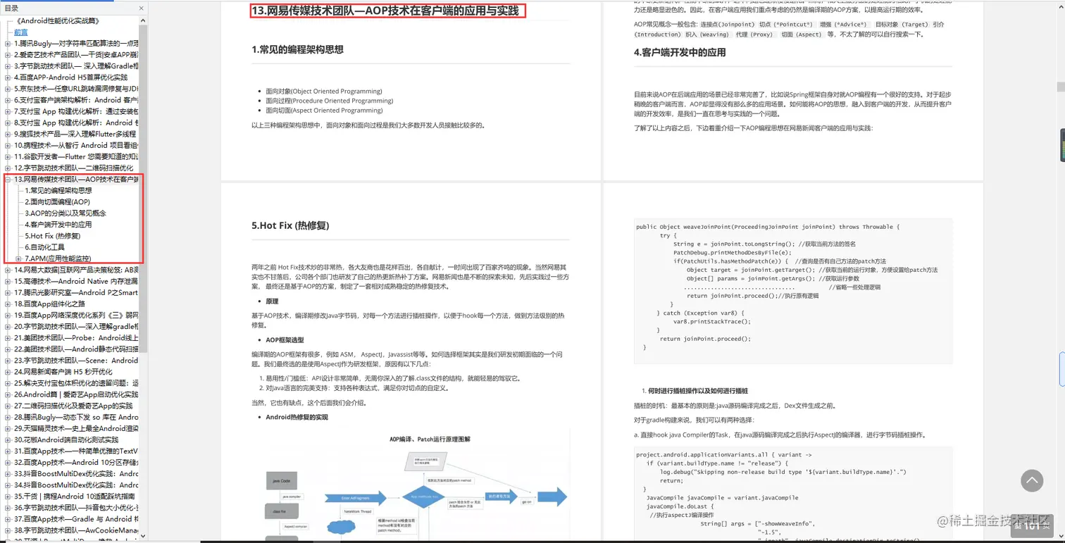 这时我们就可以从一些互联网公司中性能优化项目实战中吸取经验,掌握优化过程,同时又加深对产品的理解。相信下面这篇一线互联网公司的性能优化实战能给你带来不一样的启发,其内包含了腾讯、阿里、字节、百度、网易、美团、谷歌等多家团队的项目实战+案例。