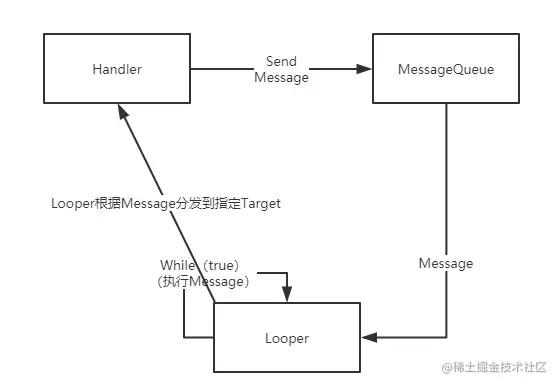 Android中提供了Looper、Handler、MessageQueue、Message的线程设计模型。
