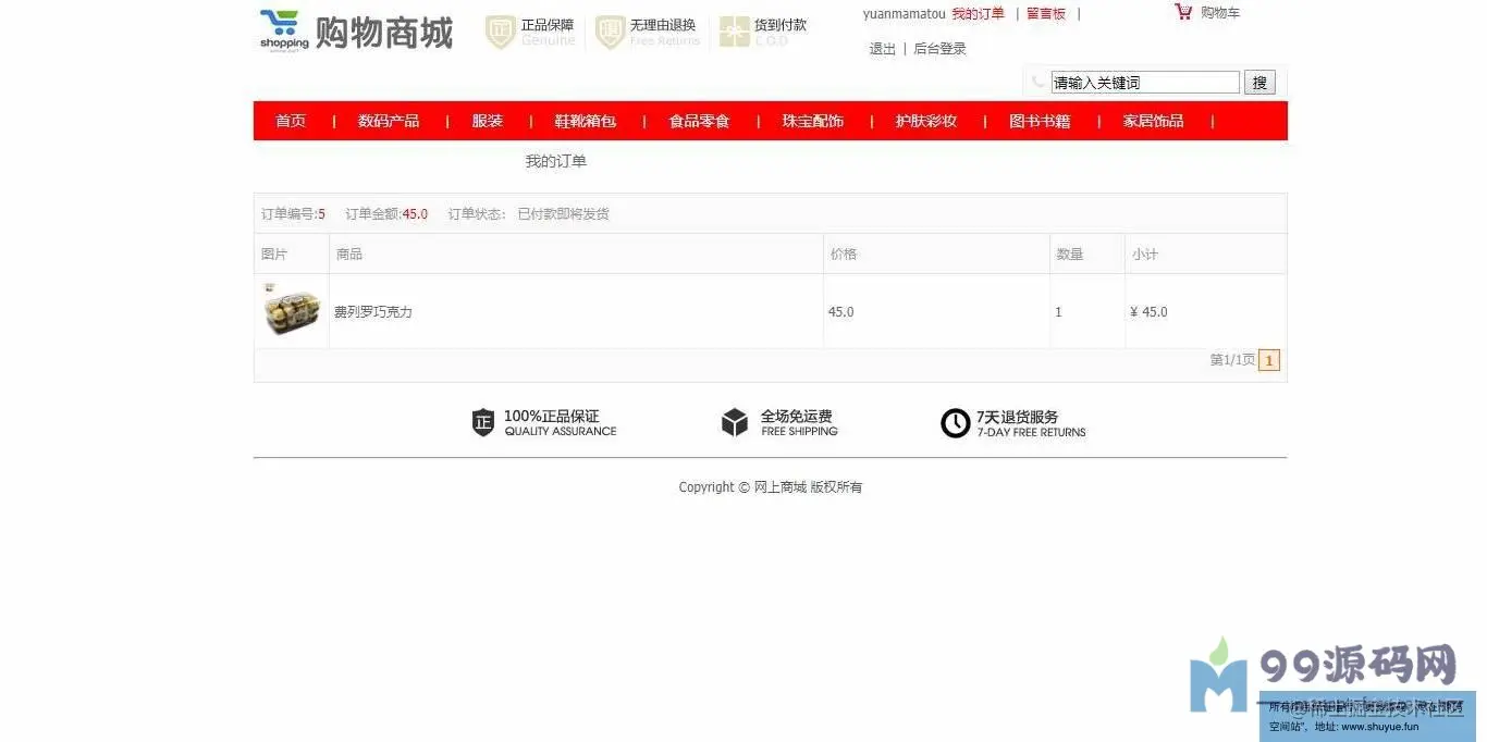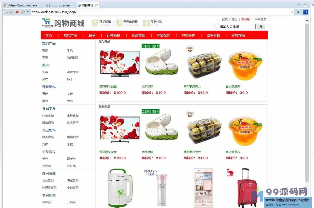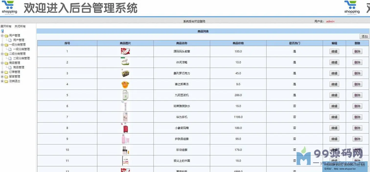 登录页面,用户查看,一级分类管理,二级分类管理,商品管理,查看订单,留言管理等功用。