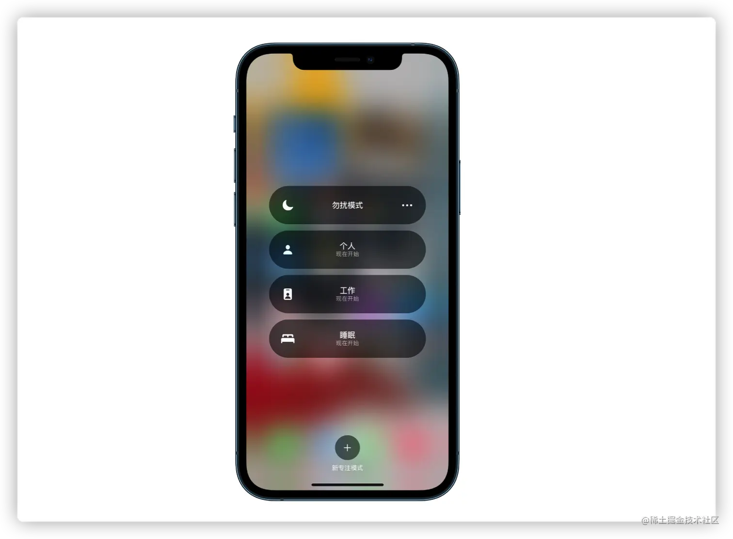 ② 手动打开:从屏幕右上方边缘向下轻扫打开“控制中心”,点击专注模式即可。