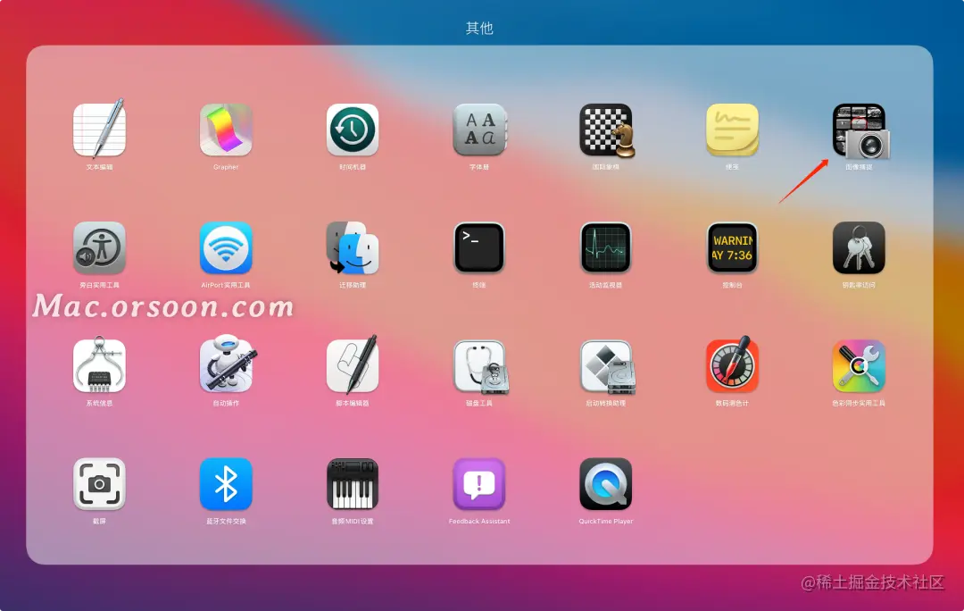 用数据线连接 iPhone 和 Mac 后,系统可能会提示解锁 iPhone 或者信任该设备。然后打开 Mac 的「启动台」-「其他」文件夹-「图像捕捉」: