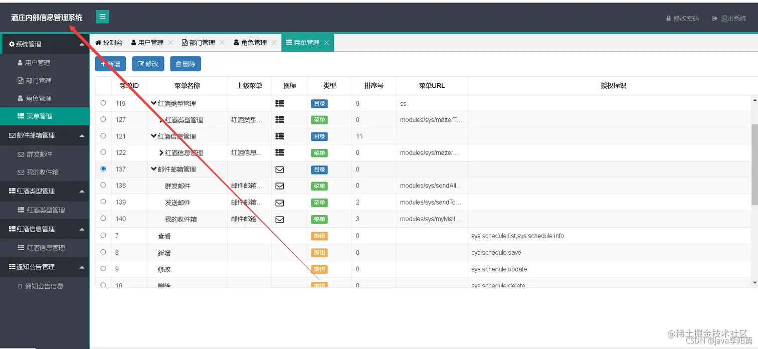 菜单管理:配置系统菜单,操作权限,按钮权限标识等。
