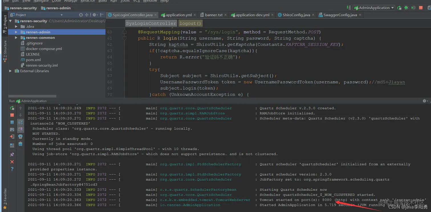 - 运行io.renren.AdminApplication.java的main方法,则可启动renren-admin项目
