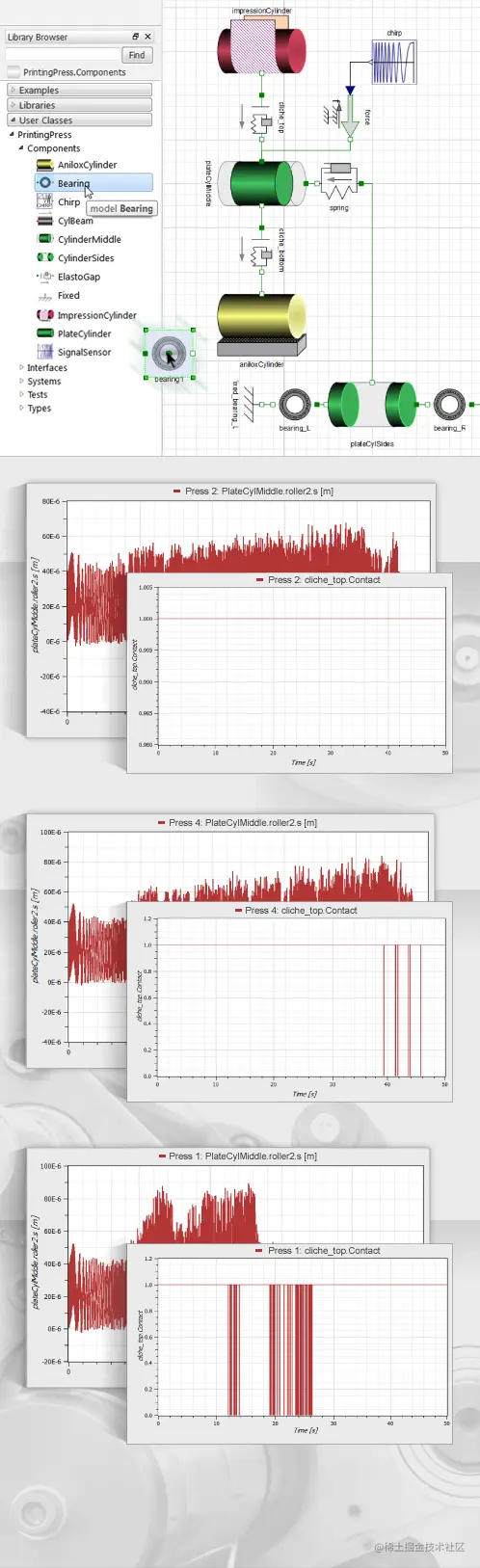 轴承间隙为0.6或0.8毫米时,印版滚筒和压印滚筒之间没有接触,因此出现反弹问题。