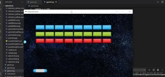 我们还将创建另一个全局变量。条形表=[]在顶部,我们将用这个来检查要显示的条子,以及球击中后要移除的条子。