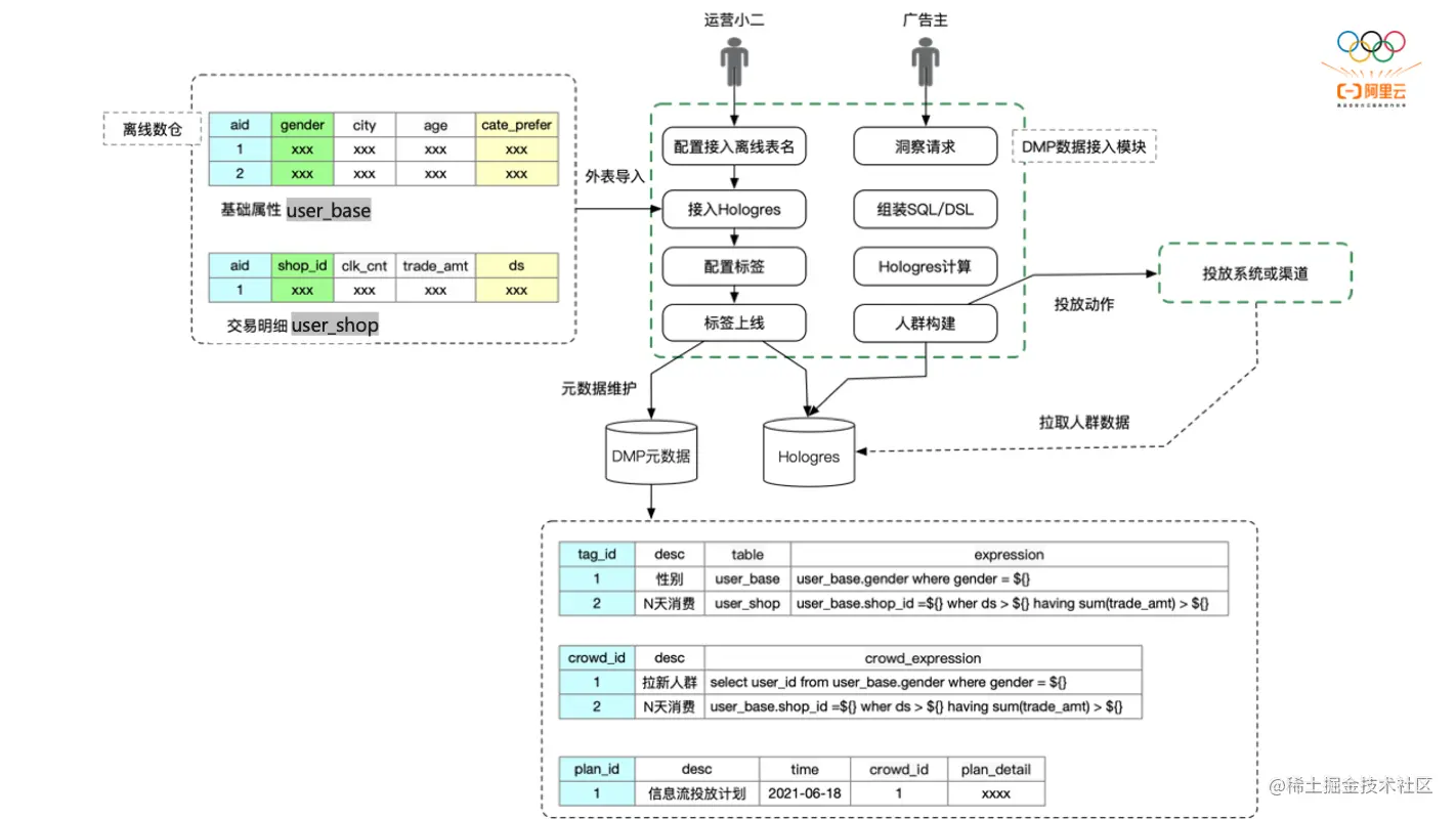 简介: 本文主要介绍如何通过 MaxCompute 进行海量人群的标签加工,通过 Hologres 进行分析建模,从而支持大规模人群复杂圈选场景下的交互式体验,以及基于API的数据服务最佳实践。