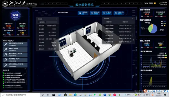 基于数字孪生,进行智慧园区的建设,将园区内的各种管理对象,例如环境、人、物和设备等,进行数字化建模,集成园区各业务系统,实现各类数据的融合共享,实现对现实世界的全域感知和镜像再现。