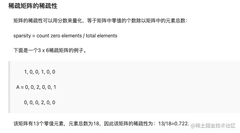 一个很典型的例子就是文本的one-hot向量化之后的矩阵,极度稀疏。