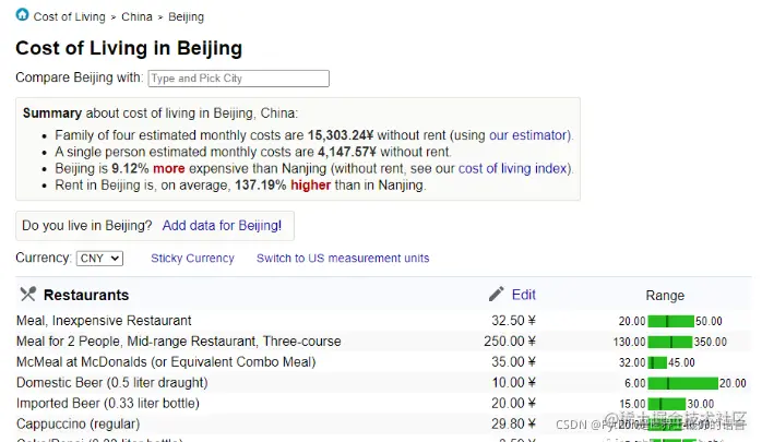 最近发现了一个神奇的网站,可以查询世界上绝大多数城市的生活成本情况,包括衣食住行等等各个方面,可以让我人在家中坐,便知天下各地人民的生活状况。害,真是咸吃萝卜淡操心呐!