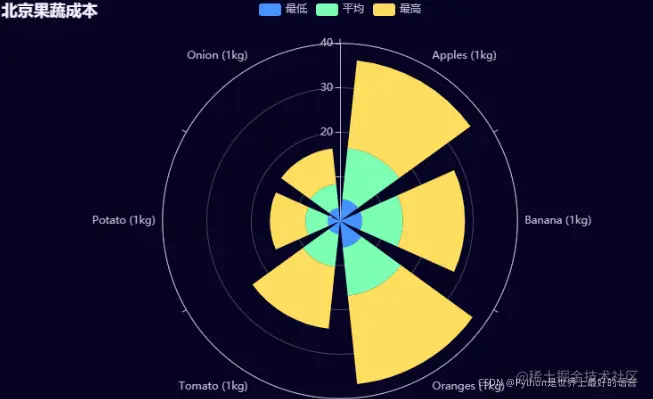 var chartDom = document.getElementById('map_1');var myChart = echarts.init(chartDom);var option;var data = data["d"];var cities = data['k'];var barHeight = 50;option = { legend: { show: true, data: ['价格范围', '均值'] }, grid: { top: 100 }, angleAxis: { type: 'category', data: cities }, tooltip: { show: true, formatter: function (params) { var id = params.dataIndex; return cities[id] + '<br>最低:' + data[id][0] + '<br>最高:' + data[id][1] + '<br>平均:' + data[id][2]; } },...option && myChart.setOption(option);