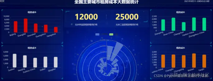 最后我们完成 flask 基本代码的编写,整个大屏就完成了