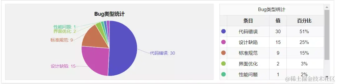 从以上数据得出,大量 bug 类型为代码问题,只有 1 个是性能问题