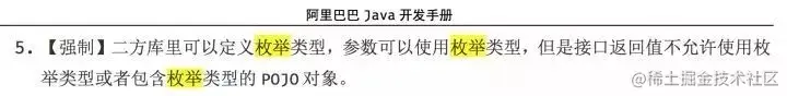 从手册可以看出,定义和使用枚举,阿里开发手册都是支持的,但是为啥,返回值就要反对了呢?