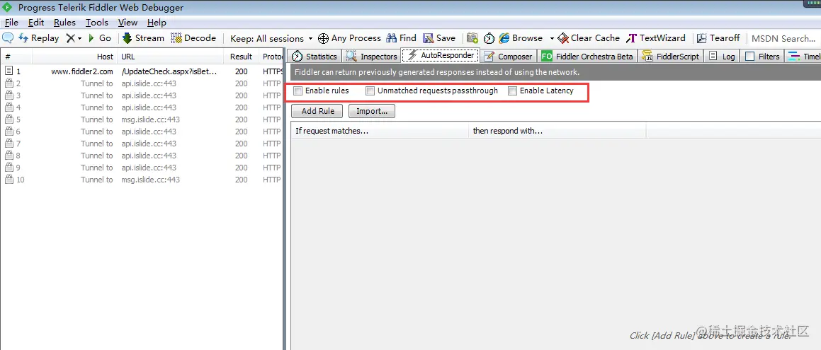 10.如果抓取的包都是错误的,需要注意把下面这几个反勾选掉。Autoresponder—enable rules