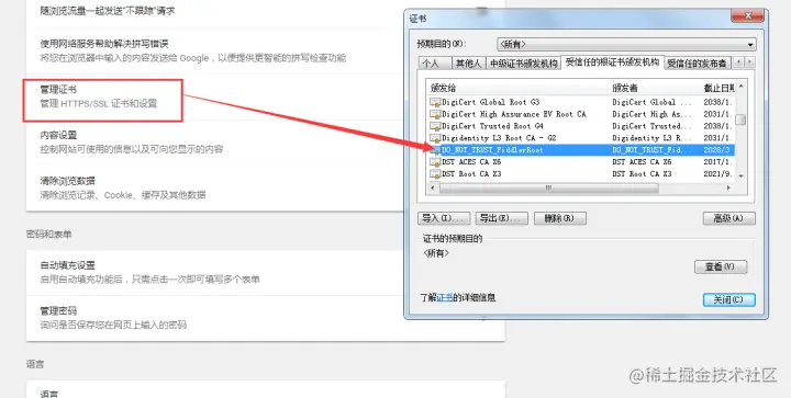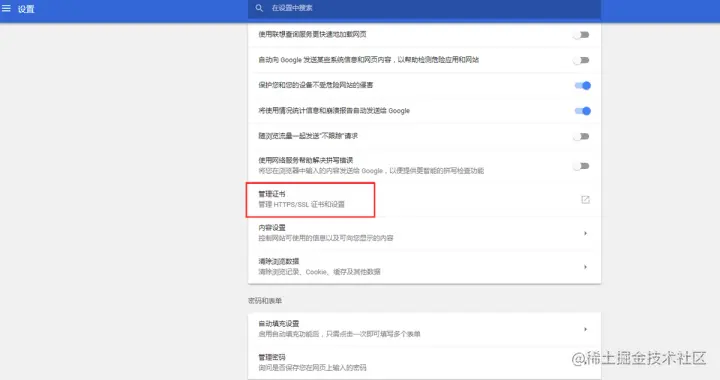 然后进入高级设置,点击管理证书