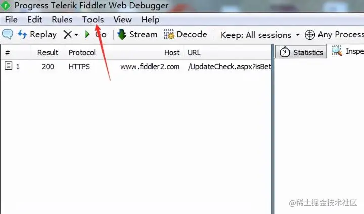 4.打开Fiddler,点击工具栏中的Tools—>Options