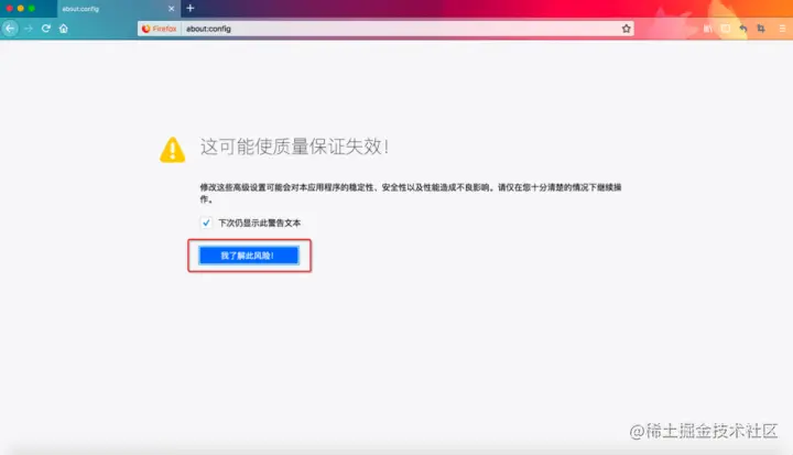 可以通过在firefox浏览器地址栏中输入 「about:config」进入