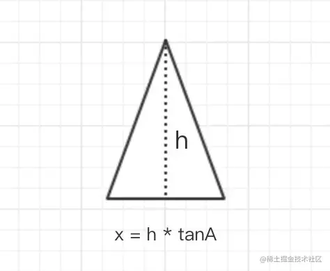 其次绘制尖角,小菜的尖角是由 lineTo 两段直线拼接起来的,只需要处理起点与终点即可;小菜为了更加灵活,可以设置尖角高度与尖角角度(0 ~ 180),通过三角函数进行计算;