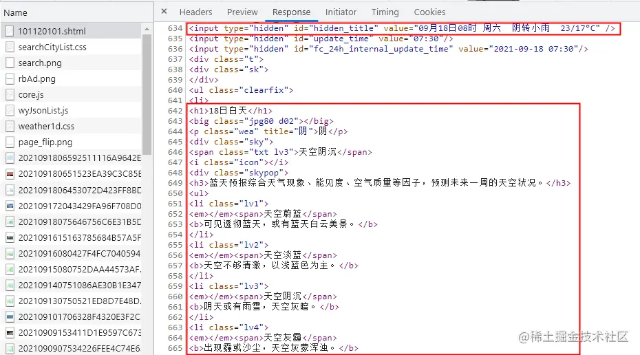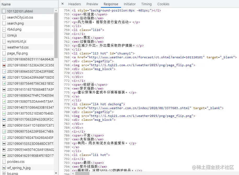分析完网站,我们发现,想要的天气信息其实都能拿到,只需要发请求,然后用一定的规则去解析网页。拿到我们所需的数据即可。