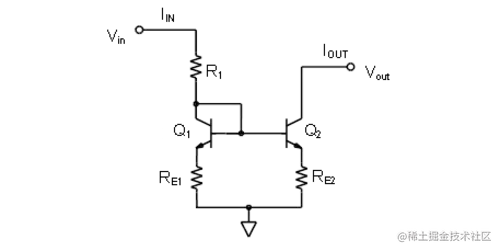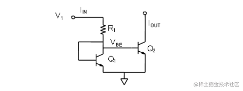 如果图 11.4 中的晶体管 Q 1和 Q 2相同(即具有相同大小的发射极,因此等于 I S),则输入电流与输出电流之比或增益理想情况下为 1。通常情况下,增益不是 1必需的。当用分立器件构建电路时,只有简单的整数比是可能的,而在微电子集成电路中,可以制造具有任意发射极面积 A 的晶体管。 然而,即使在集成电路中,最佳设计实践也是在制造电流时使用相同单位尺寸的晶体管镜子。