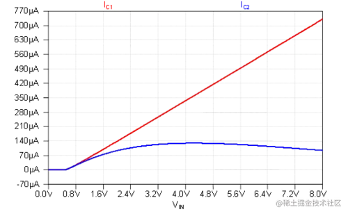 有必要保持输出 (BJT) 晶体管不饱和,V CB = 0 V。或者换个角度,不允许集电极基极结正向偏置。这意味着在输出晶体管处于输出电流电平 I C和V CB = 0 V 的偏置条件下,产生正确输出电流(顺从电压)的最低输出电压为V OUT = V CV = V BE或,重述之前的V BE关系: