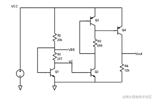 镜子中Q 1 的V CB为零。如果V CB在输出晶体管Q是大于零2,Q中的集电极电流2将小于q稍大1由于早期效应。换句话说,反射镜具有由输出晶体管的 r O给出的有限输出电阻,即: