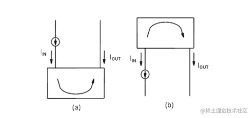 电流镜的理想块级概念如图 11.1 所示。给定一个电流源作为输入,电流镜的输入部分看起来像一个虚拟短路并反射(交换流动方向)这个电流以产生一个电流吸收器(离开镜的电流);结果,我们得到了一个电流吸收器(图 11.1a)。相反,给定一个电流吸收器作为输入,电流镜反射该电流以控制电流源(图 11.1b);结果,现在我们获得了一个电流源。我们可以通过第一个观察来概括这个基本的电流镜结构:电流镜由连接到高阻抗输出电流级的低阻抗输入级组成。