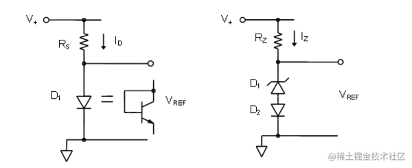 由于击穿机制的基本噪声,基于低 TC 齐纳(雪崩)二极管的参考也往往有噪声。单片齐纳管已大大改善了这一点,如第 14.4 节所述。
