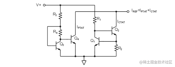 图 14.5 组合 CTAT 和 PTAT 电流源使恒定