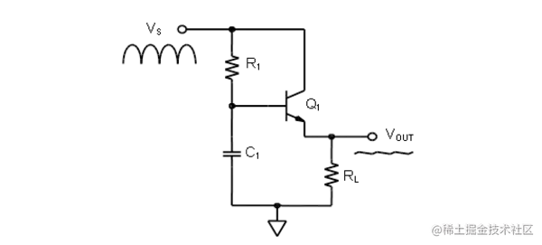 R 1和C 1形成一个低通滤波器,有助于平滑V S上的任何纹波,例如来自全波整流器的纹波。R 1提供充电电流以及晶体管(Q 1)的基极电流。R L是电路上的负载。如果没有 Q 1,R L将成为电容器上的负载,而 C 1必须非常大以保持低纹波。在 Q 1就位的情况下,施加在 C 1上的负载只是负载电流减少了 β 倍。相反,C 1似乎“乘以”了负载的系数 β。