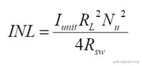 我们实际上需要知道的是 Rsw 来设计 DAC 单元元件。可以重新排列此公式,为我们提供给定整体 DAC 分辨率和 1/2 LSB INL 误差所需的 Rsw :