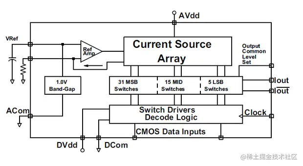 亚微米 CMOS 技术已成为高采样率开关电流数模转换器设计的首选工艺 [1-9]。亚微米栅极长度 MOS 晶体管的开关速度已允许数百MHz 的采样率并且在极端情况下超过每秒千兆样本。与许多 ADC 中使用的开关电容器电路需要混合信号工艺变体和高质量多晶硅或金属金属电容器不同,开关电流 DAC 可以使用标准 CMOS 工艺。这些设计已经将工艺代数从 0.8 微米降低到 0.18 微米甚至更高。这些设计的某些共同特征已成为必然。因此,重要的是要注意许多最好的电路技术都受知识产权保护,在开发商业产品时应特别小心。数据转换器领域是专利的雷区。