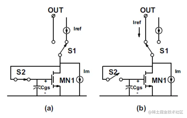 这种技术存在一定的系统误差源。调整装置 MN1 和主电流源 Im 中的装置的操作条件可能在校准和正常操作模式之间变化。在校准时,器件的V ds被设置为等于MN1的V gs(图 11a)。然而,在正常操作中(图 11b),V ds由连接到端子 OUT 的任何电路设置。这可能是共源共栅设备或 DAC 的输出开关。由于电流源设备的有限输出阻抗,导致工作模式的电流将不同于在校准配置中流动的电流。每个单元略有不同,所需的调整量,即MN1的栅极电压,会有所不同。校准和操作模式之间的电流变化将取决于调整水平。这将限制校准结果的准确性。为了最大限度地提高设计电流源的裕量,器件通常会偏置,使得V ds略大于V dsat的设备。在此配置中,校准时MN1 和 Im的V ds必须等于MN1的V gs。