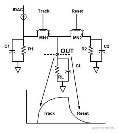 归零开关可以减少数字数据噪声引起的定时误差造成的失真,但对于非常高的采样率,如果输出在每个半周期都没有完全稳定,那么历史效应或采样间干扰不会被消除,并且可以导致信号相关的失真。需要注意的是,该方案并非完全没有与信号相关的时序错误。MN1 和 MN2 的开启和关闭点将取决于在节点 OUT 处看到的信号电平。很难判断这种方法报告的 SFDR 结果是否真的比参考文献中报告的结果好。[4] 因为对于 25 MHz以上的输出频率,两者似乎都被限制在 -75 dBc 左右,这似乎是许多频谱分析仪的测量极限。