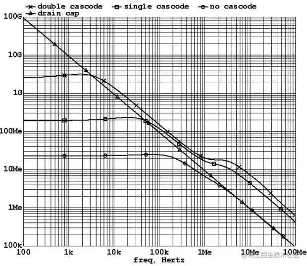 随着输出频率的增加,图 14b 中所示的寄生电容降低了电流源阻抗 [21]。如图所示,可以包括一个或多个共源共栅级以改善低频输出阻抗,并扩展电流源输出阻抗可接受的频率范围。图 15 显示了标准 0.18 µm CMOS 工艺中示例单位单元的模拟输出阻抗与频率的关系。三角形曲线表示开关 MP1 和 MP2 的漏极到栅极和漏极到体结电容的总和,它们总是出现在输出节点上,与开关是关闭还是打开无关。其他三条曲线是开关打开时看到的阻抗(不包括固定漏电容)。圆圈表示主电流源设备直接连接到开关对的情况。方形曲线包括一个级联,x 曲线包括两级级联。对于这两种级联情况,在达到 DC 电阻之前,漏极电容主导阻抗。我们可以使用相同的 INL 公式来衡量失真将在什么频率上超过所需的规格水平。同样对于差分输出配置,偶阶失真项会大大衰减。在某些时候,漏极到体结电容不可避免的非线性将占主导地位。我们可以使用相同的 INL 公式来衡量失真将在什么频率上超过所需的规格水平。同样对于差分输出配置,偶阶失真项会大大衰减。在某些时候,漏极到体结电容不可避免的非线性将占主导地位。我们可以使用相同的 INL 公式来衡量失真将在什么频率上超过所需的规格水平。同样对于差分输出配置,偶阶失真项会大大衰减。在某些时候,漏极到体结电容不可避免的非线性将占主导地位。