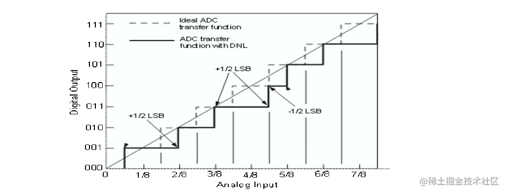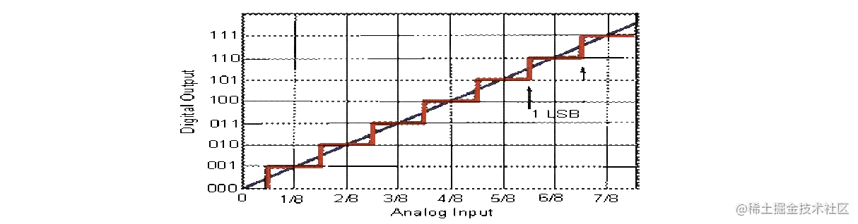 此范围内的任何模拟输入都给出相同的数字输出代码。