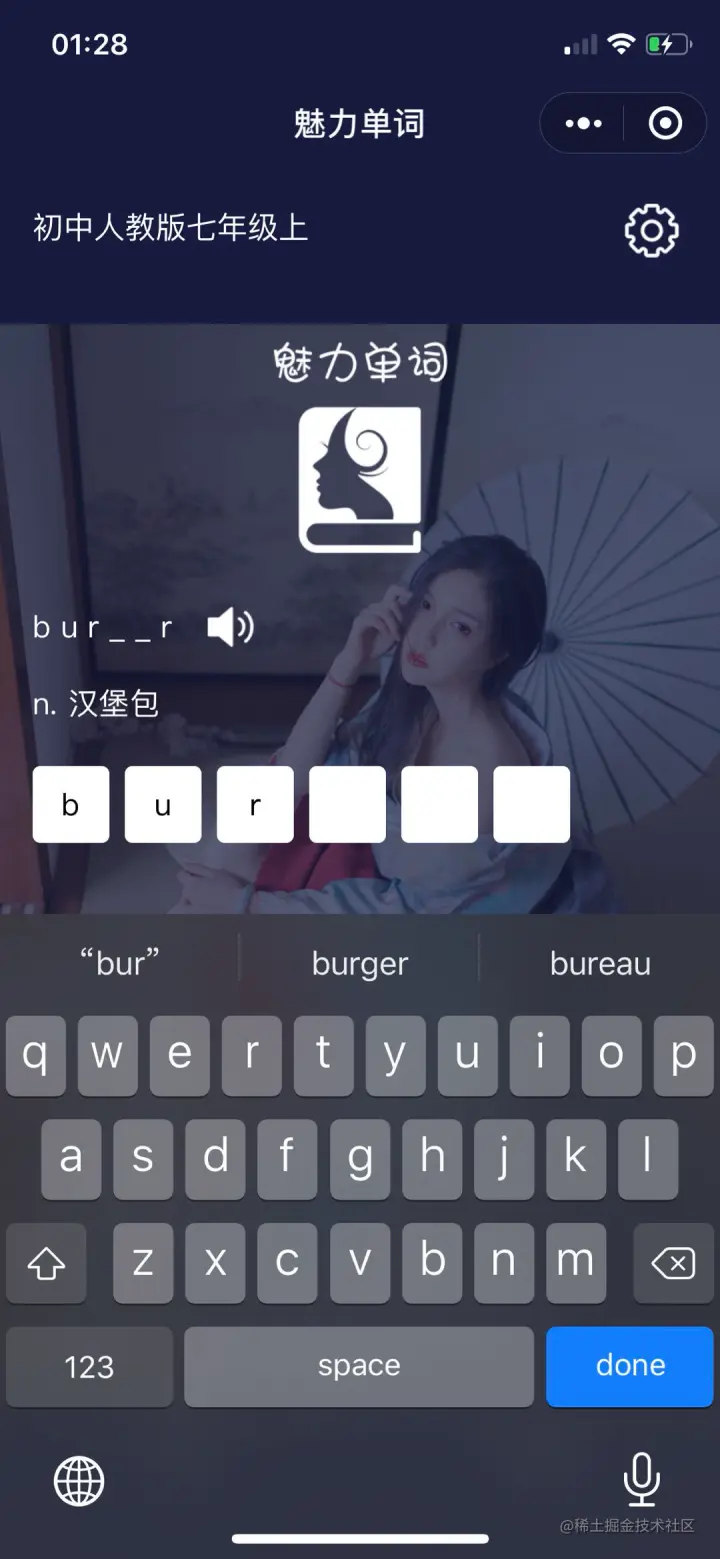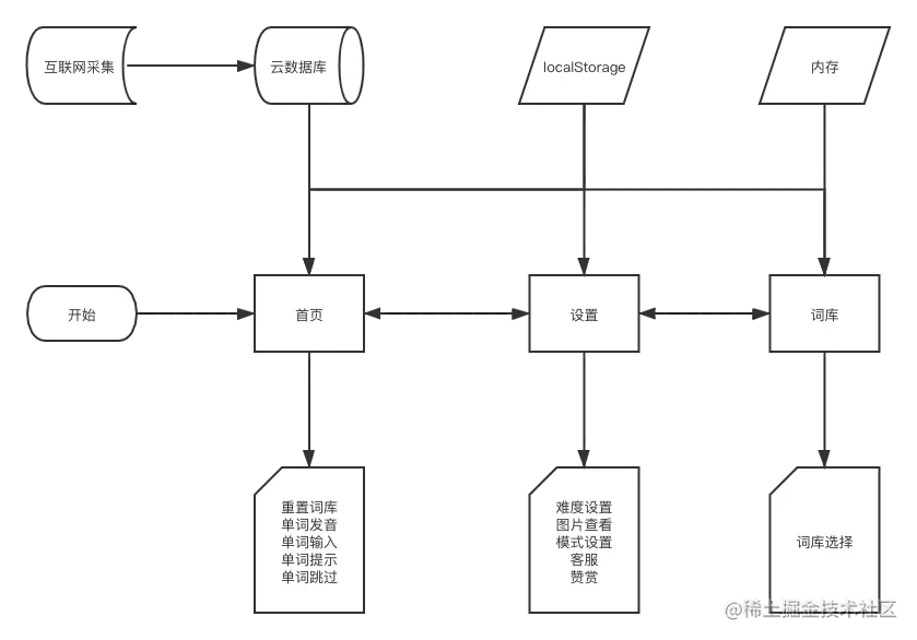 按批次拉取数据缓存到内存及localStorage中,实时对比输入内容与当前单词,基于图片奖励,继续循环下个单词。