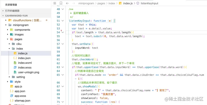 本小程序基于云开发,用到了云数据库存储数据,使用云函数获取词库列表,随机获取单词词条,图片列表。