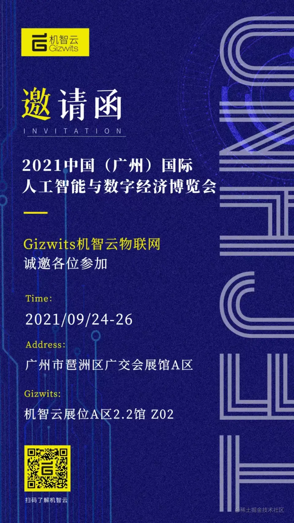 9月24日至26日,以“科技兴国,数字赋能”为主题的2021中国(广州)国际人工智能与数字经济博览会(简称“广州智博会”)将在广州市琶洲区广交会展馆A区举行,Gizwits机智云物联网受邀亮相本届展会。