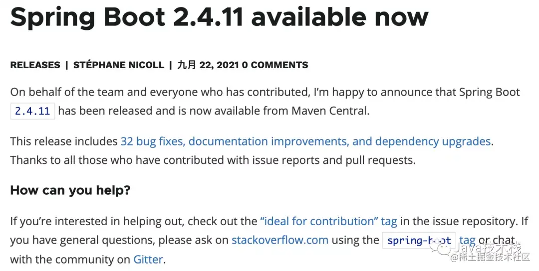 本次更新同步发布的版本还有 Spring Boot 2.4.11: