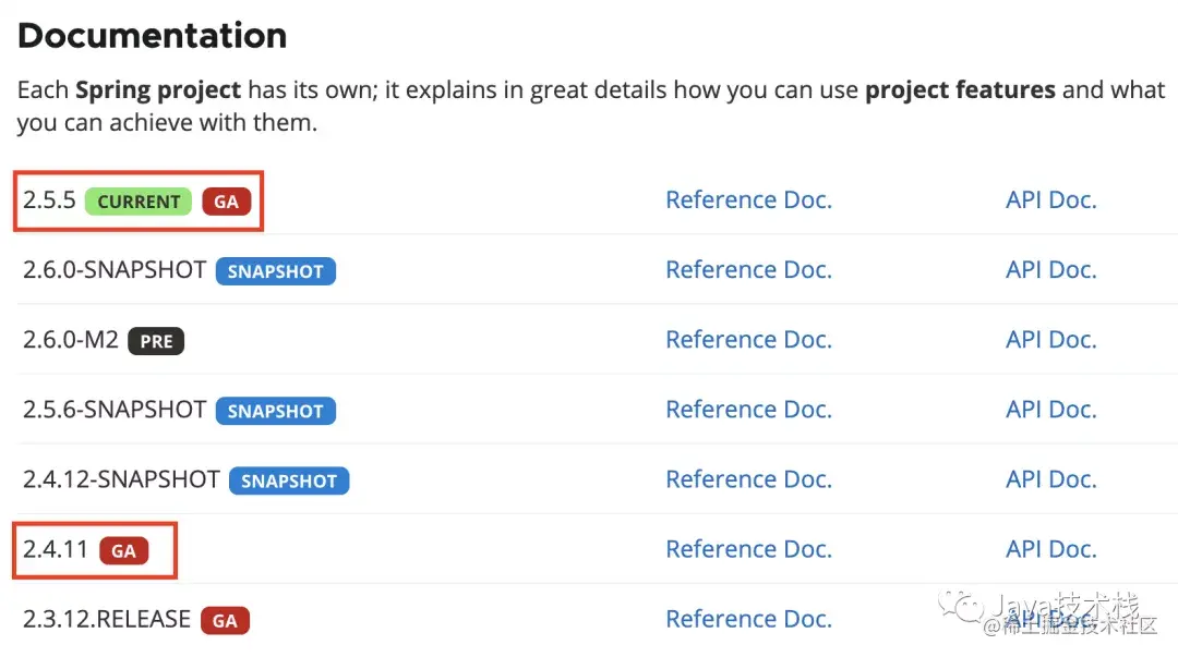 需要注意的是,2.4.x 版本开始版本号不带 .RELEASE 后缀了!