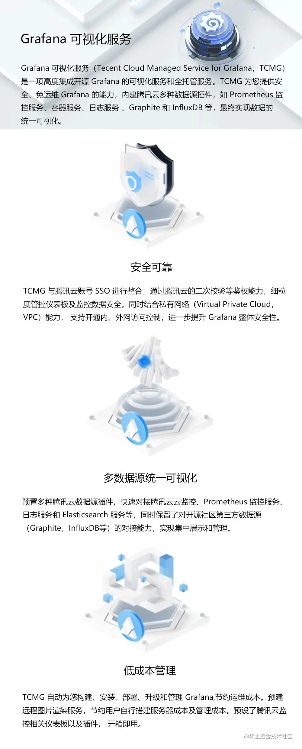 9 月 23 日,腾讯云宣布与业界领先的开源数据可视化公司 Grafana Labs 达成深度合作协议,共同开发和验证全新的 Grafana 托管服务,通过 Grafana Labs 开源软件与腾讯云的整合,帮助用户快速对云上负载及性能指标数据进行可视化监测。
