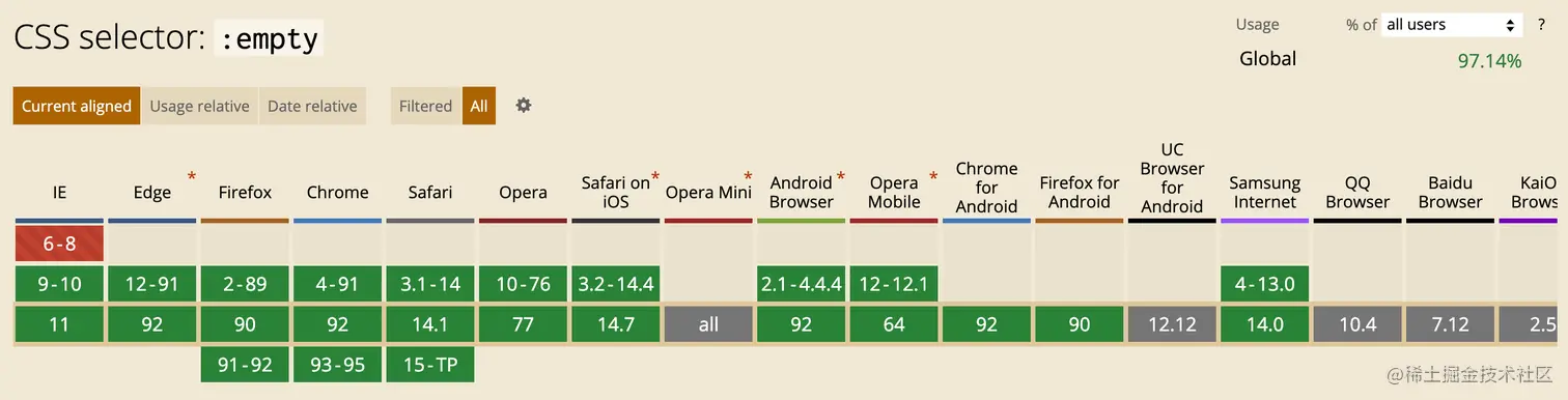 :empty的浏览器支持程度