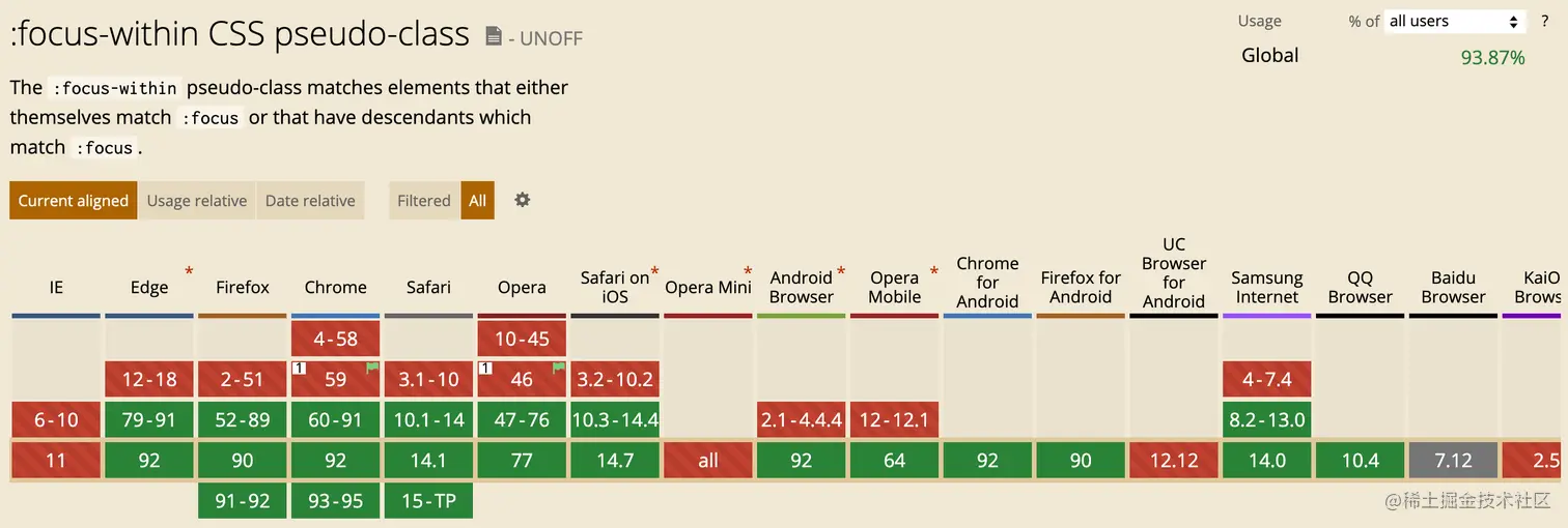 :focus-within的浏览器支持程度